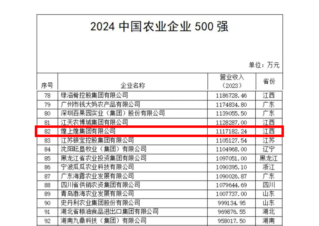 12月11日,農(nóng)民日?qǐng)?bào)社發(fā)布2024中國農(nóng)業(yè)企業(yè)500強(qiáng)榜單。榜單聚集發(fā)布糧油、畜牧、奶業(yè)、水產(chǎn)、食品、流通、農(nóng)資等領(lǐng)域頭部企業(yè),煌上煌集團(tuán)...